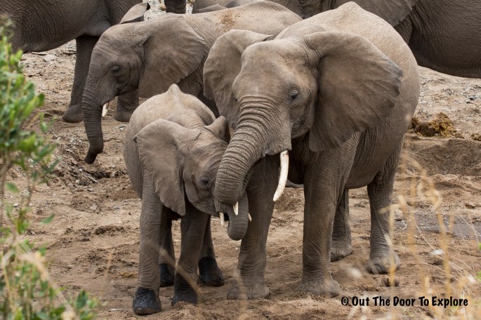 We assume that the elephants have dug this hole themselves into the dry riverbed. The Serengeti can be a tough place to live in and animals must be innovative to survive. The adults will pass these skills onto the young calves.