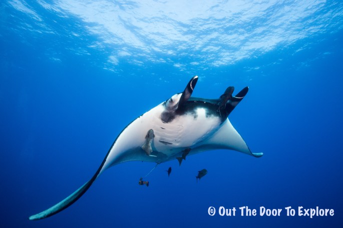 Giant manta with two remoras attached. San Benedicto Island, Mexico.